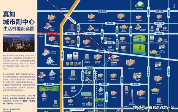 商业配套:家乐福(真北店)、星光耀广场、绿地缤纷城、华润万家、仙乐都生活广场、红星美凯龙、环球港双子塔、奥特莱商城、新世界百货等等;项目斜对面约40米真北支路大型生活菜市场。