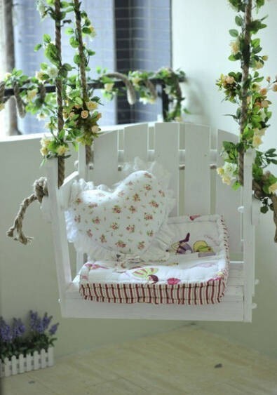 在阳台给小宝贝做一个小花园,设计一个浪漫的秋千,每天下午陪着小宝贝荡秋千也不错!