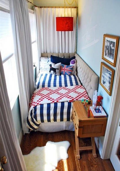 如果你家宝贝是个爱闹的小家伙,你可以在阳台设计睡床,在这里你可以陪TA玩耍,睡前给TA讲故事,困意来时拉上窗帘,让TA美美地睡个好觉。