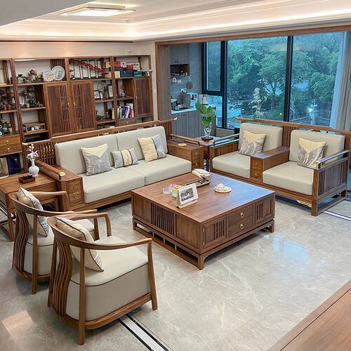 而织然新中式实木沙发则以其高品质的北美黑胡桃木和独特的禅意设计,吸引了许多追求生活品质的消费者。它的七件套组合设计,既实用又美观,适合大户型或别墅的使用。