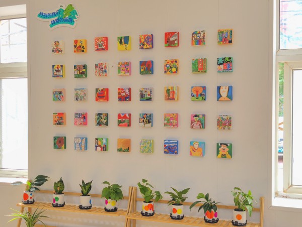 空间环境优化充分考虑特殊儿童的实际需求,打造系列特色功能区域:将地铁展览中的艺术装置迁移至同行之家作为空间视觉导视,自然融入日常生活动线;精选特殊儿童日常画作和前期艺术疗愈活动中的绘画作品,装裱后悬挂于教室和走廊,既能起到美化环境的作用,也能够更好地展示特殊儿童的艺术天赋和内心世界;结合绿植和绘画作品打造情绪墙并增设留言板,鼓励孩子们认领并学习养护植物,感知生命与艺术的共生共融,构建持续陪伴的温暖空间。