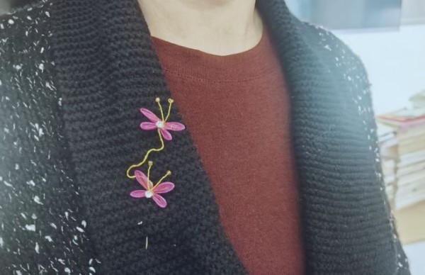动手环节中,在老师和社区工作人员的指导下,学员们逐步完成布料剪裁、翅膀缝合、触角安装、胸针底座固定等步骤。大家专注操作,互相交流心得,遇到问题及时向老师或身边伙伴请教,现场氛围温馨热烈。经过近两小时制作,一枚枚色彩斑斓、形态各异的蝴蝶胸针顺利完成。刘阿姨笑着说:“没想到我能做出这么好看的胸针,太有成就感了!”