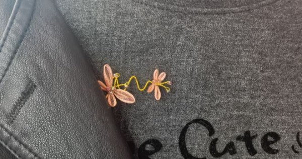 活动现场,经验丰富的舒涵老师率先展示精美的成品蝴蝶胸针,斑斓布艺瞬间点燃大家的创作热情;她接着耐心讲解棉布、针线、填充棉等材料特性,逐步演示平针缝、藏针缝等基础技法,还一边捏着布料示范一边强调:“藏针缝要把线藏在布料缝隙里,这样成品才整洁美观。”
