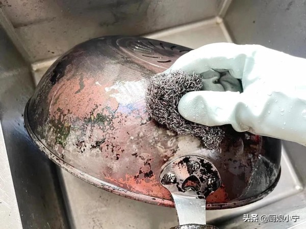 不仅锅底的油垢非常的厚,连锅的里边也已经包了浆了,不夸张地说,小宁可以从锅里的味道判断出最近三顿饭婆婆都做了什么菜!其实婆婆并不是一个不干净的人,反而是一个挺利索的老太太,只不过老年人眼神不太好,再加上洗锅的时候舍不得用太多水,所以才会是这个样子的,相信不仅我家老人是这样,还有很多老年人都有一样节省节约的习惯吧!