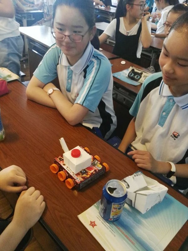 在制作活动中,学生思维活跃,纷纷自己动手来诠释他们心中的“低碳环保”理念,为环保事业奉献出自己的一份力量。这些废旧物品如易拉罐、塑料瓶、废鞋盒、废旧衣物等,经过学生们的巧手简单改造以后,变成了漂亮的花瓶、实用的笔筒、神奇的万花筒、坦克模型等,既环保又实用。