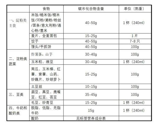 如果使用这一方式,您可以根据以下表格,推算出每日实际摄入碳水化合物的量:
