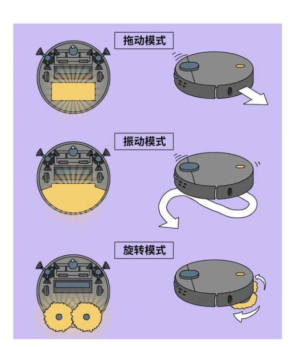扫地机器人的拖地模式也有三种。