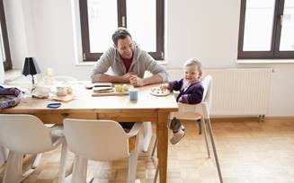 (2)坐上高脚椅后一定要在椅子上。绝对不要让孩子系着安全带而站起来。