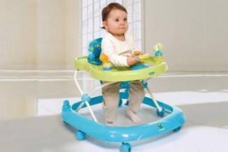 学步车虽然可以暂时摆脱父母照顾,带来了方便。事实上通过学步车孩子是学不了自己走路的,有时反而使走路延迟:过早站立或站立时间过久还会引起两下肢的弯曲;而更为危险的是可以引起翻车,造成摔伤及挫伤事故。据资料统计其中47.6%为头部受伤,28%为面部受伤。这主要是由于坐椅和底盘高度不当所造成的。所以在选择学步车时,一定要选择至少有6个轮子,以获得最大的稳定性,轮子所在的底普应比学步车的高度长;车身牢固,轻巧灵活,材料无毒无害的,以避免发生意外。另外,孩子使用学步车时要把房门关上,以免冲出门外,经楼梯而自高处跌下;室内凡是学步车可到达的地方不要放热水瓶、小玩意儿等,以免发生原先估计不到的意外。
