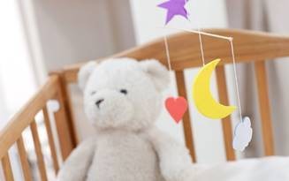 (2)不要让任何柔软、蓬松的物品靠近小床。枕头、靠垫、床罩、围巾、长毛绒玩具等不能放在婴儿床上,以防发生窒息;宝宝睡觉时要让他脸朝上、背朝下,以免发生猝死。