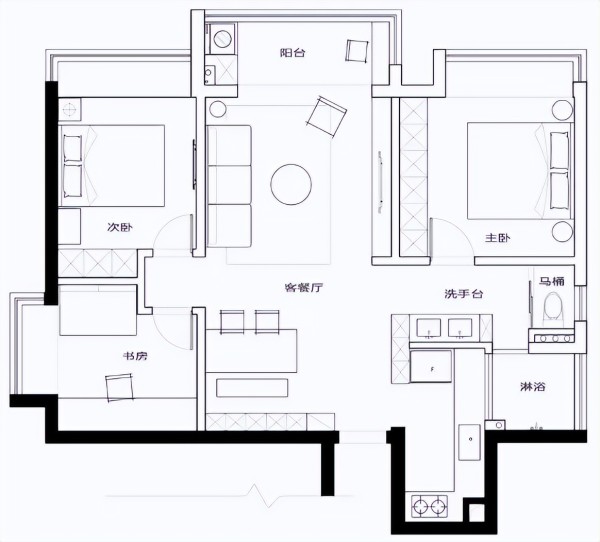 另外,将此处卫生间洗漱台外移,动线更加合理,餐前或外出回家方便 洗手。