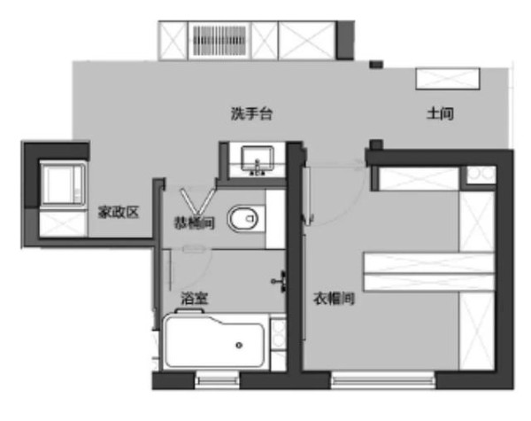 以拆改墙体的方式来扩展卫生间的面积,借用附近空间的一些空间,将卫生间面积增大,从而实现三分离设计。