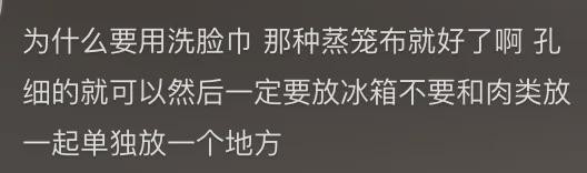 因为洗脸巾有一定的吸水效果,符合做干噎酸奶的要求,冰箱里还有生肉、炸肉以及其他东西。