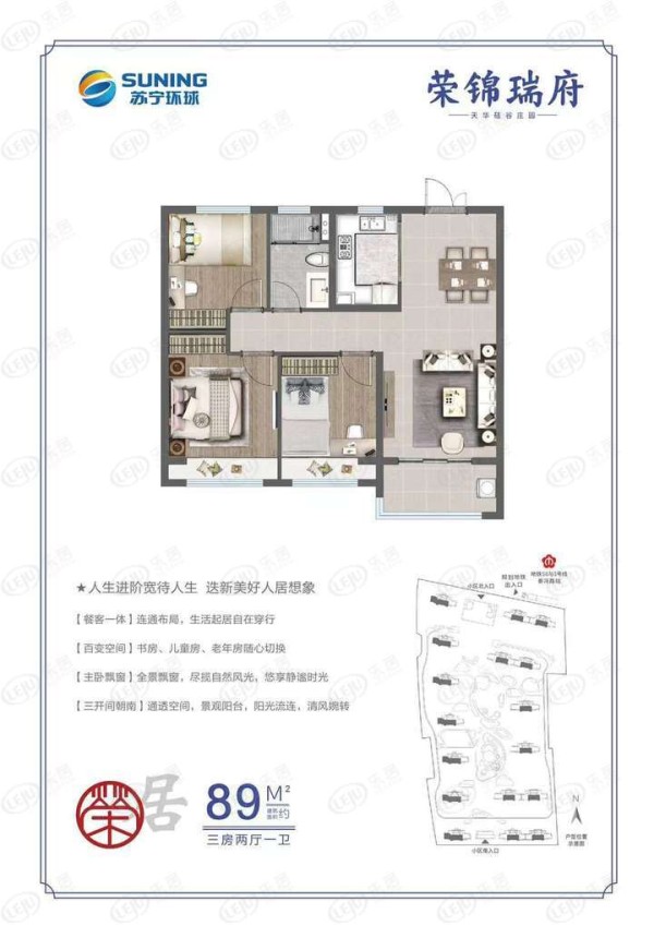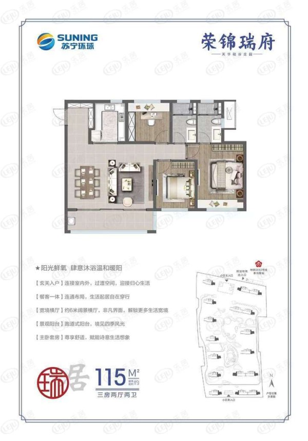 3、荣锦瑞府由苏宁环球开发,打造偏刚需、刚改、改善属性三期升级作品,细节打造更符合市场需求。