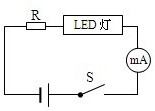 ,把一个LED灯接入如图所示的电路中,已知电源电压为5V且保持不变,电阻R为90Ω.闭合开关,毫安表(量程更小的电流表)的读数为20mA,此时LED灯发出的光颜色是