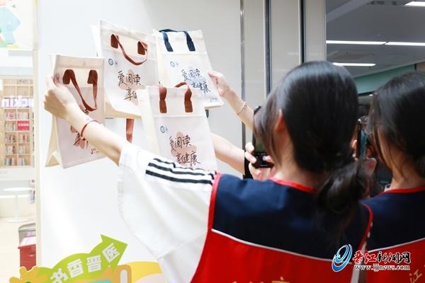 读者在晋江市医院(上海市第六人民医院福建医院)打卡JIN·医书房“爱读书 享健康”IP。(记者_唐诗莹 摄影)