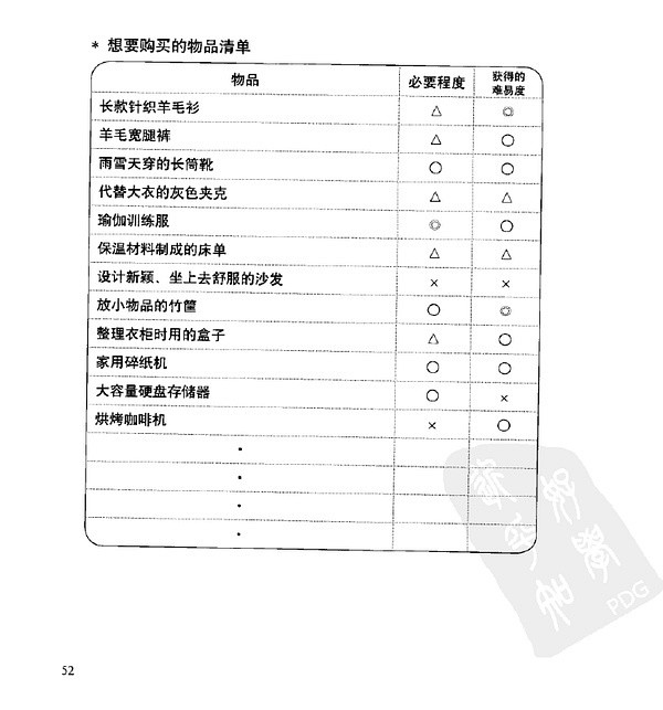⑦没有也无所谓,在某件东西成为必需品之前,请问问内心:如果没有它,你有多为难?得到它后,享受(使用、看、阅读)它的频率是多少?用不着它的时候,应该怎么办?如果把它一直放在身边(不用),它还能算是美好、方便的东西吗?