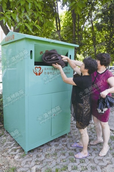 昨天上午,家住雁湖小区的凌女士拿着两袋整齐叠放的旧衣服,投入小区门口的爱心捐衣屋里。“在家里放了很久了,扔了可惜,放着又占地方。昨天听邻居说,小区里有个箱子回收旧衣服,我立即就拎过来了!”凌女士高兴地表示,这个捐衣屋实在是太方便了,打算再整理一些出来。