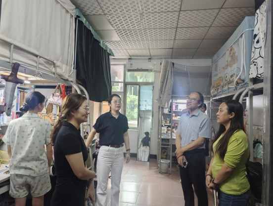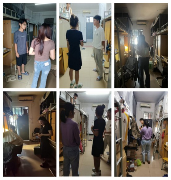 启动仪式结束后,徐浩艇院长带领学院领导、辅导员以及学生干部代表,深入“一米阳光”一站式学生社区进行实地检查,他们细致检查了宿舍的卫生状况、安全隐患以及积水清理情况,对发现的问题当场提出具体的整改建议。与此同时,徐院长鼓励学生干部充分发挥模范引领作用,带动身边同学踊跃参与各项活动。