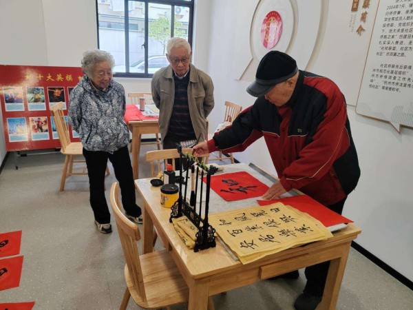 针对社区居民尤其是老年群体的精神文化需求,这里常态化开展多元活动,例如非遗体验、书法绘画、观影品鉴、健康讲座等。一场场活动串联起居民的日常,既丰富了精神生活,也为邻里交流搭建了轻松的桥梁。