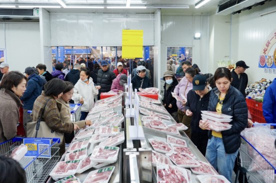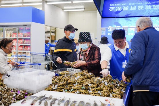 生鲜区迎来秋冬上新,三红蜜柚、软籽石榴、果冻橙等时令蔬果饱满水灵,肉类区的无抗黑猪肋排和带皮五花肉,以及火锅专区的精品涮肉和蔬菜拼盘,都为天津市民的秋冬餐桌增添温暖选择。水产区也上架了活鱼和贝类可现捞现选,并围绕天津消费者偏好,新增富硒大闸蟹和罗氏虾等鲜活水产,门店免费提供现场宰杀与预处理服务,市民拎回家可以直接下锅,畅享秋冬海滨鲜味。