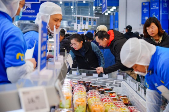 此外,针对禽肉、海鲜、熟食和烘焙等生鲜与现制商品,门店严格落实“当日上架销售,当日清理”的原则,隔夜商品一律下架报损。门店还应用多点AI智能技术,实现果切等生鲜商品的小时级阶梯式折扣出清,以及冷链、防损和巡检等全流程的实时监控,进一步保障天津市民“菜篮子”的新鲜度。