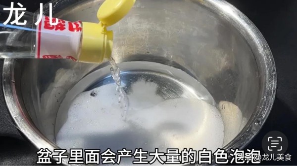 用温水效果会更好,水不需要太多,大概一碗的样子,接着往里面加入一勺盐,一小汞洗洁精。1勺食用小苏打。接着再准备一瓶酒精,酒精家家户户都有吧,倒入几滴进来即可。接着再往里面加入少量的白醋,这个时候我们就会看见盆子里面会产生大量的白色泡泡,这个是因为我们的白醋和里面的小苏打产生了化学反应所导致的,是正常现象。