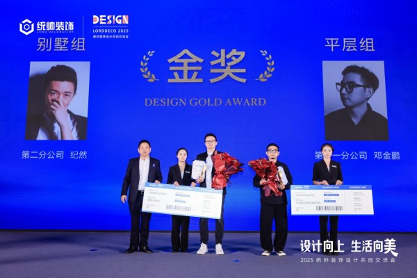 本次评选分为“别墅组”和“平层组”进行独立评审,聚焦于创意与概念、功能与实用、美学与艺术、技术与落地等多个维度。通过多轮评选与终评答辩,最终统帅装饰设计师纪然、邓金鹏分别荣获 “别墅组”和“平层组”金奖。