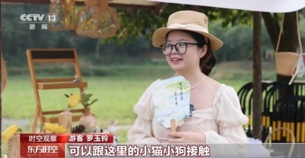 游客 罗玉铃:非常开心,可以和梅花鹿快乐玩耍,可以跟这里的小猫小狗接触,享受这边的田园生活。