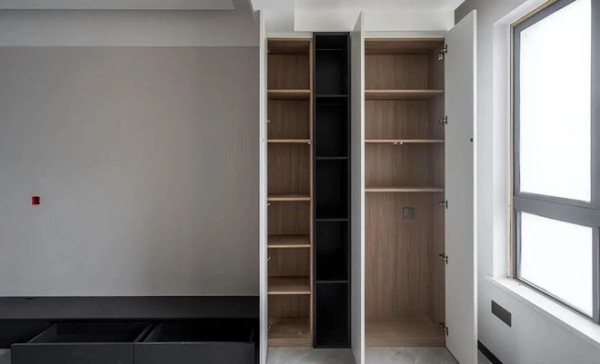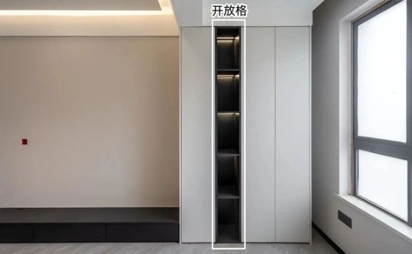 若是想要增添装饰效果的话,也可以学这位业主家留出部分装开放格,藏露结合不仅凸显层次感,将书籍、摆件往上一一陈列,也是尽显生活气息。