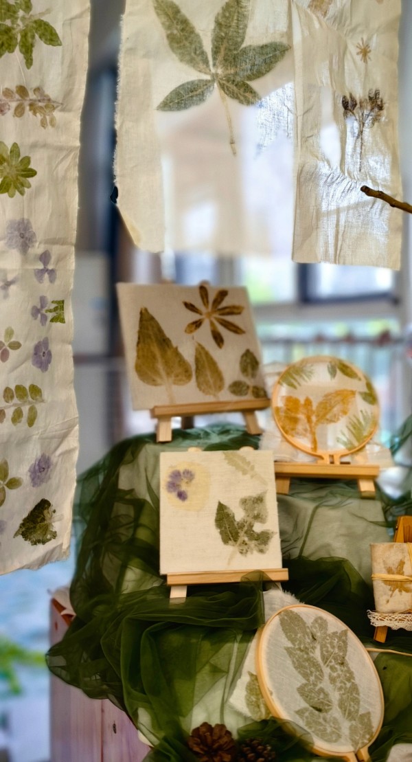 植物是大自然的一部分,从古至今,人们使用植物制作了不少工艺品,植物拓染就是其中一个。收集新鲜植物叶片、花瓣,准备棉布、锤子等,通过敲打或浸泡染液,将植物脉络与色彩拓印在布上,制作手帕、布袋,融入自然之美。