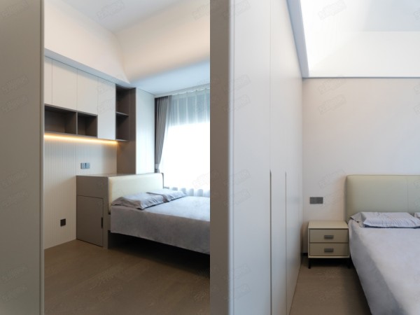 用天然木纹、石纹搭配出一面典雅高级的卧室背景墙,利用比例、光影、明暗,营造卧室空间的质感和氛围,挑动极致的视觉感官,让全屋定制房间散发出一种温暖平和的气息。
