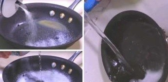 6. 锅底烧焦时,光用看的就心情不好了。这时候只要加入一些水、一杯醋再煮沸,当开始发酵时在观火,添加一些苏打水,当作用停止后再把里面的液体倒掉。要是还有烧焦残留,轻轻在锅内加入苏打水擦拭。