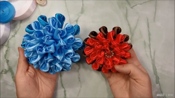 DIY家居教程,缎带装饰花朵的制作方法,难度2颗星!