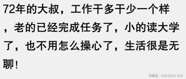 看到大家都这么无欲无求,陷入中年之后的低欲望躺平状态,41岁的我放心了、释然了。