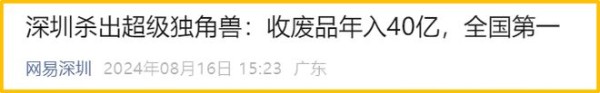 2024年8月16日,据网易深圳,在《深圳杀出超级独角兽:收废品年入40亿,全国第一》一文中报道: