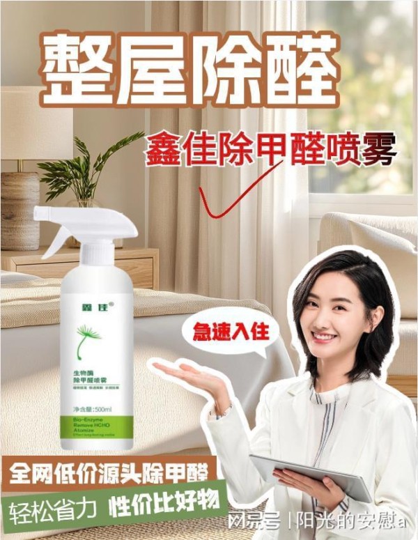 这款鑫佳除甲醛喷雾利用先进的分解技术,是采用 生物酶+光触媒的双重作用,适用于:板材家具、真皮、皮革沙发、窗帘、地板、地毯、乳胶漆等,直接作用于甲醛分子,将其分解为无害的二氧化碳和水。在家具表面、墙面、地板等甲醛释放源轻轻一喷,就能快速渗透家具内部,促进甲醛、苯、氨、TVOC等有害物质的挥发。