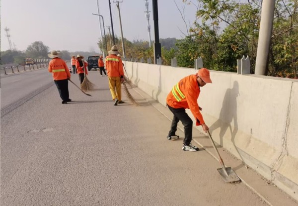 黄陂区城管局、交通局、有关街道综合执法部门联合行动,出动百余名志愿者,30余台保洁作业车辆,采用“机械+人力”相结合作业模式,对岱黄高速公路、黄土公路、中环线、绕城高速沿线、铁路沿线、城乡结合部等地段的暴露垃圾、乱堆放、私搭乱建等问题进行综合整治;对道路沿线的护栏、隔离带等附属设施开展巡回清洗吸扫,核心区域实施立体抑尘作业,彻底清除道路灰带、泥沙、积水等各类污染问题,确保道路通行环境畅通洁净。
