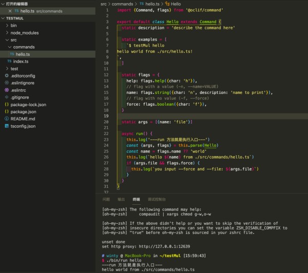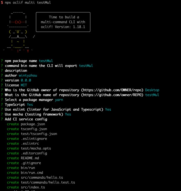 执行npx oclif multi testMul,创建一个多命令的项目: