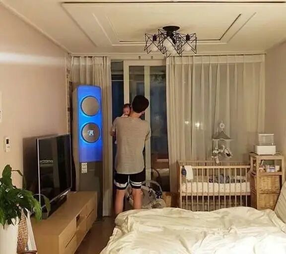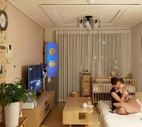 韩国奶爸带娃,房间不大,却布置得温馨甜蜜,一家人超有爱