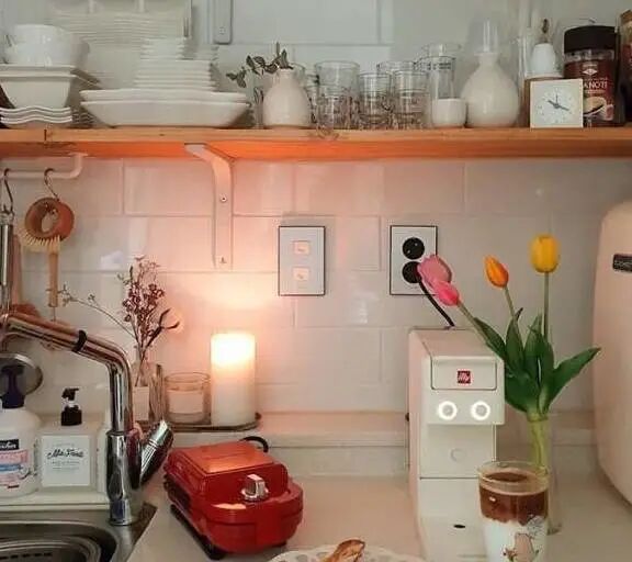 超会布置的主妇,把厨房布置得有条不紊、井然有序。不仅仅会收纳,做起饭来也是很有一套的,看起来就很美味的样子。聪慧的主妇巧妙的运用墙面的空间,木质的双层隔板,整齐有序的摆设着厨房用具。就连厨房的瓶瓶罐罐,都装满着日常调料,创意十足。