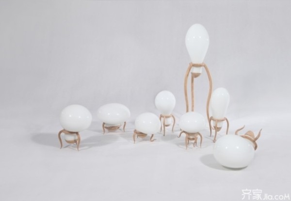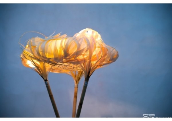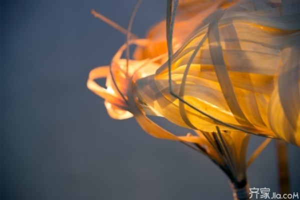 - NO.2 -竹子因为其独特的韧性,生长快速,从古至今在产品上就是十分重要的材料。设计师当然也不会放过这样的好材料~设计师利用了竹材的编制效果,给我们带来了这组名为拥抱的创意灯具。竹竿相交,三足鼎立,竹竿顶端分裂弯曲,抽出缕缕薄片,丝丝竹纤,而后又在半空交融缠绵扭曲为一个环,愈缠绵处愈温暖光亮。 分不清是从竹竿抽出丝丝缕缕亦或是从那悬浮的丝丝缕缕中凝出竹竿,大概是想有这样一个效果可以代表他想传递拥抱的情感吧。