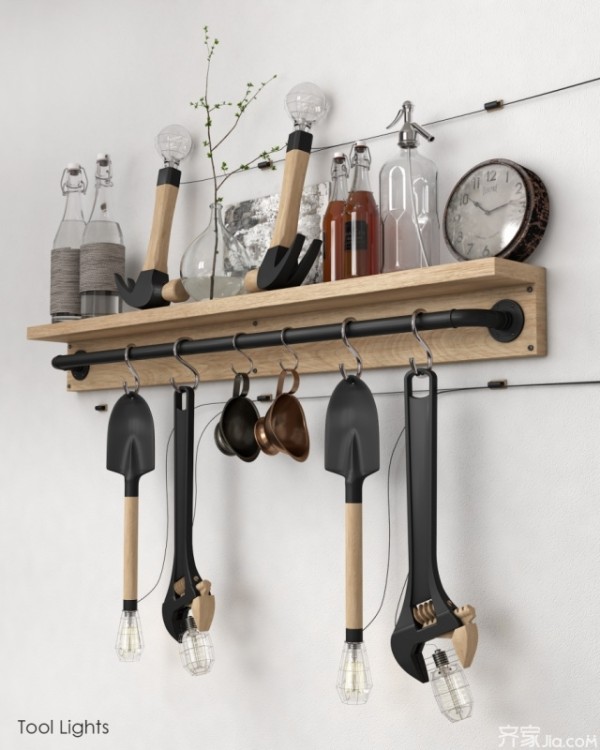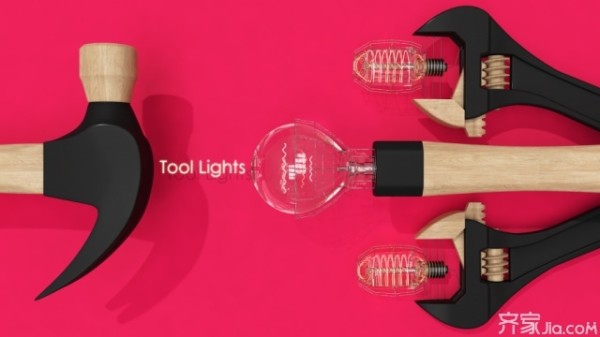 - NO.6 -酷友在画图本上随意涂鸦出了一把锤子,在底下加了一个灯泡便成了一把工具灯。用设计软件做出效果后,意外的有意思,于是脑洞大开设计了成套的工具灯,包括锤子、铲子、螺丝刀、扳手。
