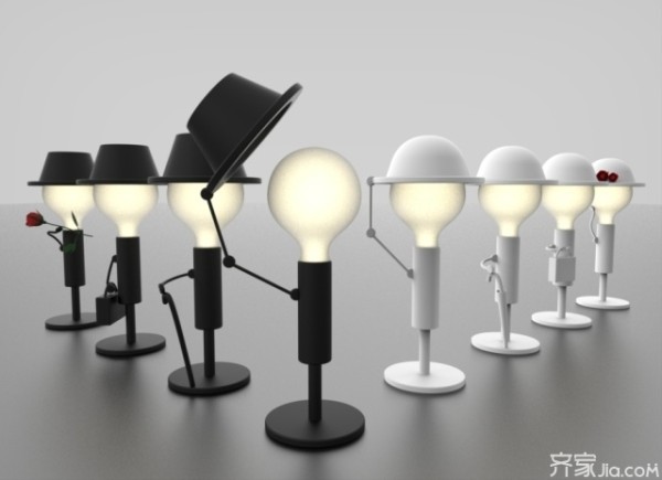 - NO.8 -主打的灯具造型是根据脱帽礼改编的,这种脱帽的行为意味着没有敌意,表示友好。在古罗马时期,头上的盖饰是社会或政治优越感的标志,抓住这个特点设计了摘帽动作的“卓别林”,形象生动的刻画了人物,也为人物增加了趣味性和可塑性。是一款具有一定创新性、趣味特色的产品哦~