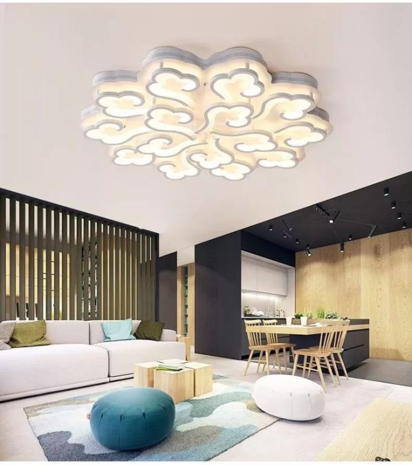 大气美观的吸顶灯向来是家庭装修中理想的灯饰选择,无论用在客厅还是卧室,都能给人带来不错的照明体验。但简单呆板的传统造型早就让人看厌倦了,于是在现代家装设计中,人们运用了测量空间、研究空间结构的几何概念,形状不一的几何形状,错落有致地填补了空白天花板。
