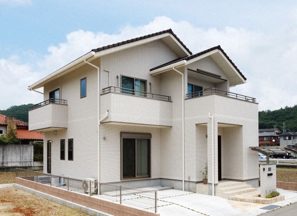 外观采用日式传统的屋顶样式组合和统一白色的外墙全瓷砖贴面,这种设计风格既传统又现代,给人留下深刻印象。