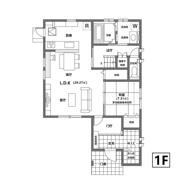 以家族互动和育儿便利性为核心的房间布局: 非常重视家庭成员之间的互动,尤其是在育儿方面。因此,在房间布局上做了精心的设计,以确保家庭成员能够方便地相互交流和互动。
