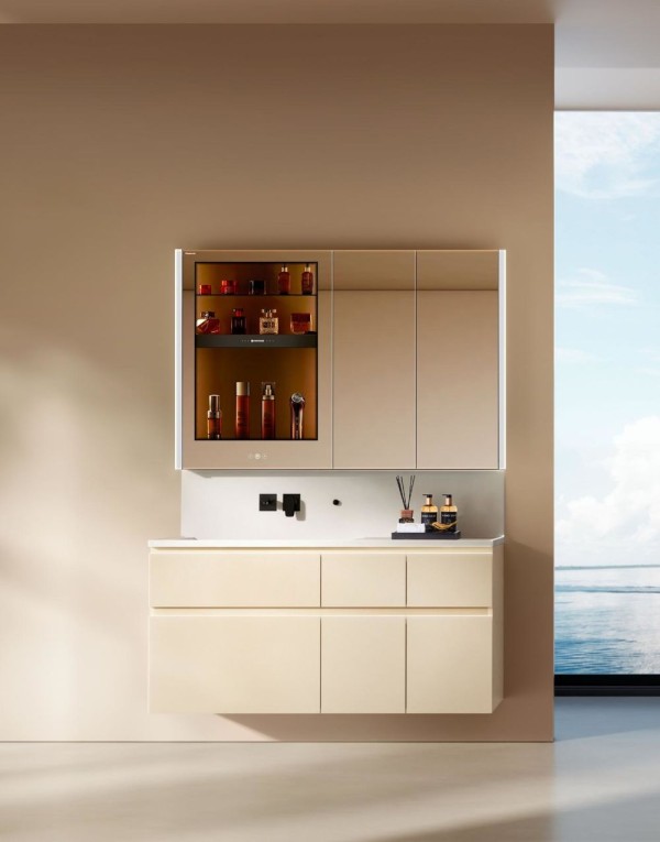 大空间的收纳设计,方便日常用品分类放置,合理摆放可满足全家人不同使用需求;具有自动防雾功能,照镜时雾气不凝结,清晰无水渍,带来方便又舒适的视觉体验;还拥有感应照明的镜柜,挥手即亮,无需触碰,不留痕迹,镜面始终保持光亮洁净。