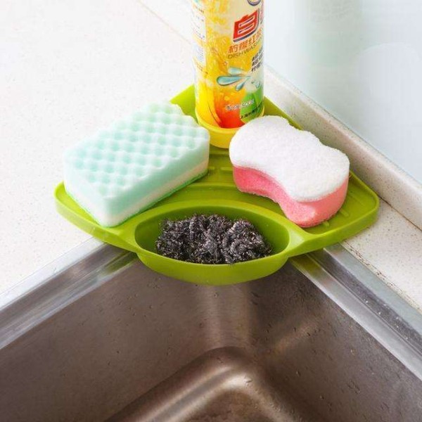 2.水槽旁边可以放置一个这样的三角形的小盒子,在上面放置清洁工具,这样我们清洁餐具可以随意取来了,很方便,而且这款小盒子很小巧,放在水槽上面一点也不碍事,不会对我们造成任何影响。