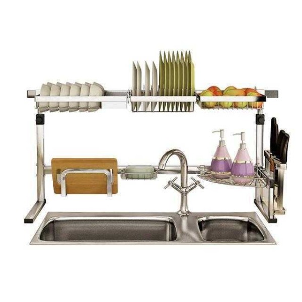 5.水槽下面也会有很多空闲的空间,可以在里面放置一款这样的置物架来放置厨具,这款置物架是采用不锈钢制成,很坚固,分为两层,收纳空间大,承重能力很强,很耐用。